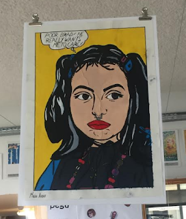 Está patente, no átrio da escola, uma exposição de trabalhos concebidos pelos alunos do curso de artes do 12ºE, no âmbito do projeto PES.